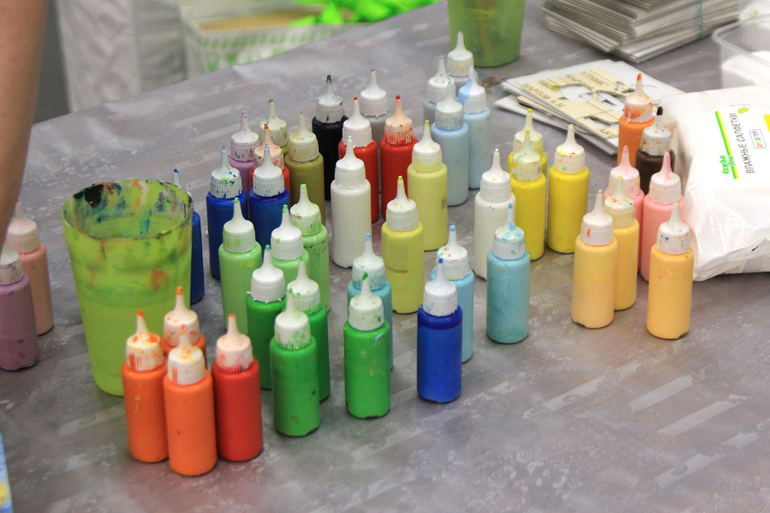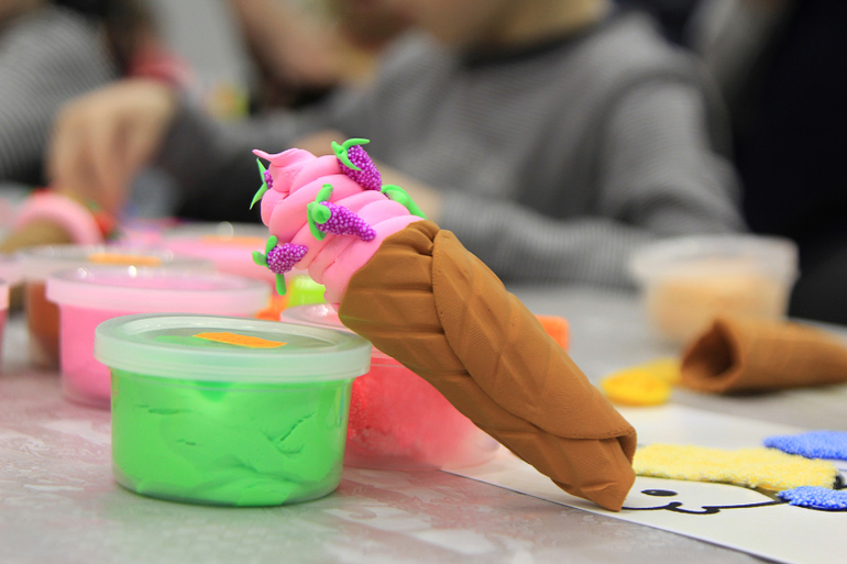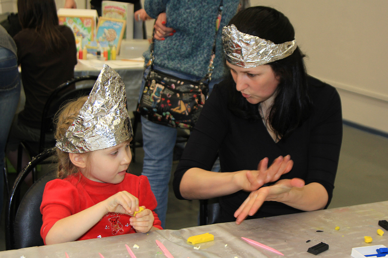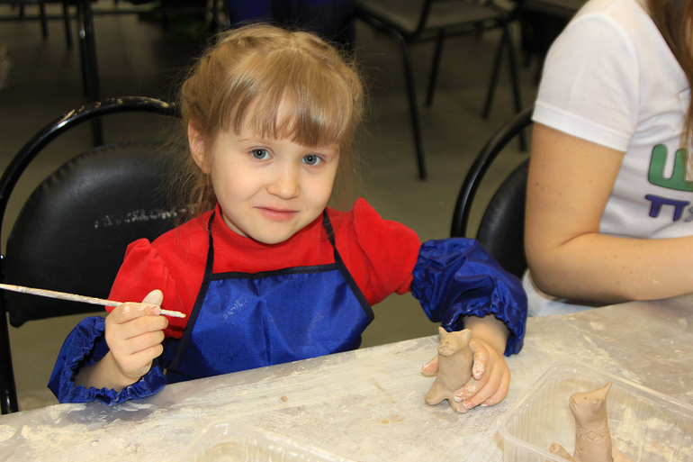 Было 7 столов, за которыми лепили, и 4 стола с песочницами. Год назад столов с мастер-классами точно было больше. Новых мастер-классов мы не увидели, хотя надеялись. мне хотелось попробовать наборы DohVinci, вроде бы они были осенью.