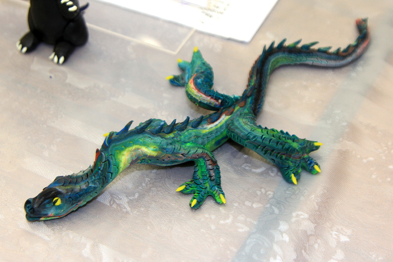 Мастер пластилиновых дел Марья Новацкая научила Сашу лепить мультяшного кота, по ходу давая ей (и мне) много полезных советов. Такая она позитивная, улыбчивая, за ее столом никогда не было пусто. А какого Груффало и дракона она слепила! заглядение!