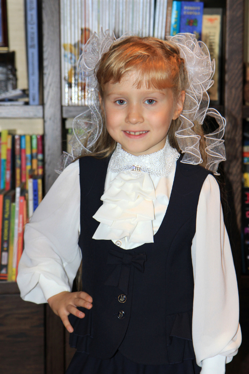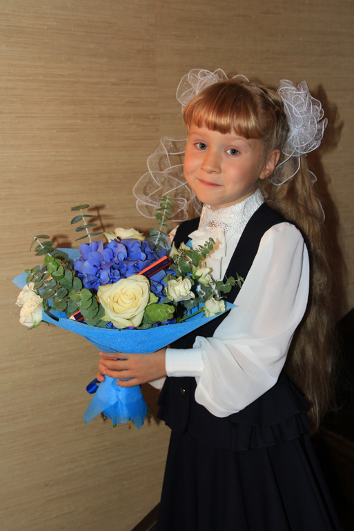Какая сладкая!!!!!!!!!!! как с открытки!!!!! образцовая первоклашка!!!! букет очень понравился!!!!Алл!!! все как всегда продуманно до мелочей!!!! успехов, терпения!!! сил моральных и физических!! и в добрый путь интересных , увлекательных открытий!!!! пятерки желательны, но не обязательны! важнее чтоб глаза горели!!!!!!обнимаю!