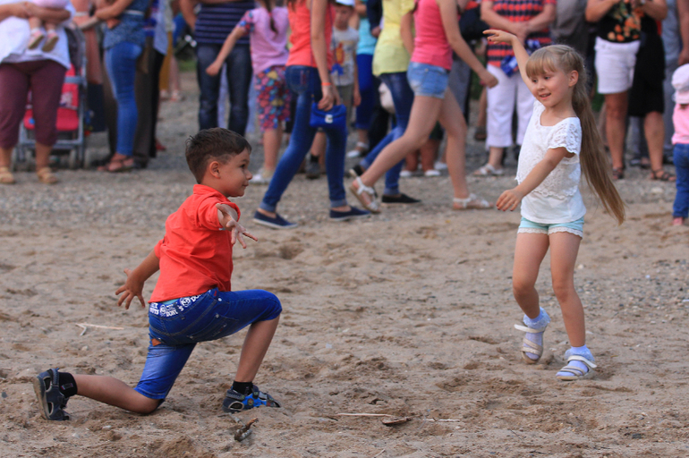 Малышня наша недолго сидела со взрослыми на травке. Совершенно не комплексуя, они долго танцевали прямо перед сценой, чем знатно развлекли зрителей))
