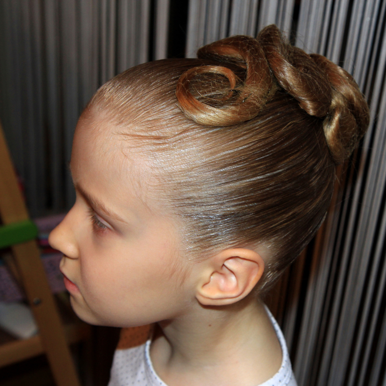 Моя привыкла))) родилась лохматая, с трёх месяцев причёски делаем, так что этот ритуал высиживает абсолютно спокойно. А вот бальные причёски - это долго.... только гладко зачесать - минут 25-30 у меня уходит... поэтому мультики, мультики, мультики - и дите готово сидеть на месте сколько угодно))