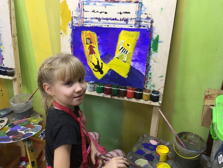 а рисование - это ее отдых. я вижу, как она расслабляется и отдыхает в эти часы, там ей нравится обстановка и общение с преподавателем и детьми. там ей абсолютно комфортно, она творит, и у нее получается. Конечно, она не хочет от этих моментов отказываться. а еще она очень хочет попробовать рисовать маслом. по графику не выходит посещать такие занятия, может, через год получится. но она прямо мечтает об этом!