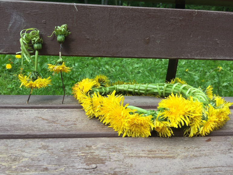 Учила Сашку плести венки и делать куколок из одуванчиков))