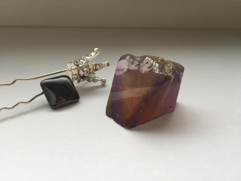 Длинный кристалл выглядит как пластмассовый, но тяжеленький, увесистый. Дымчатый кварц?