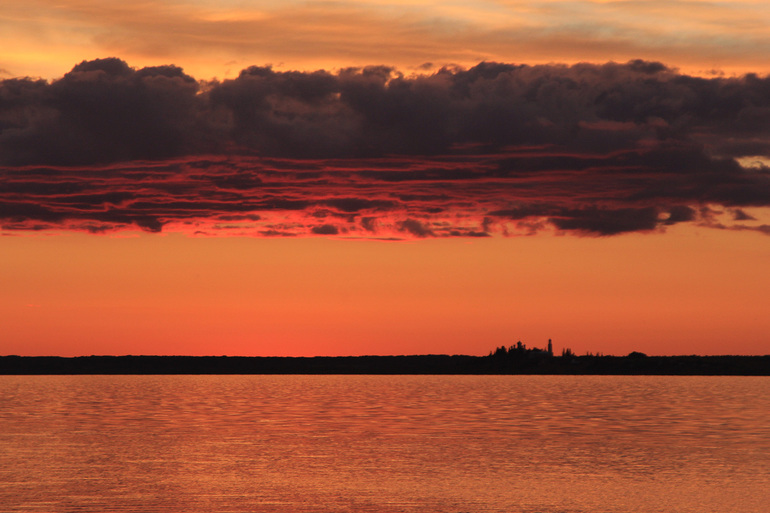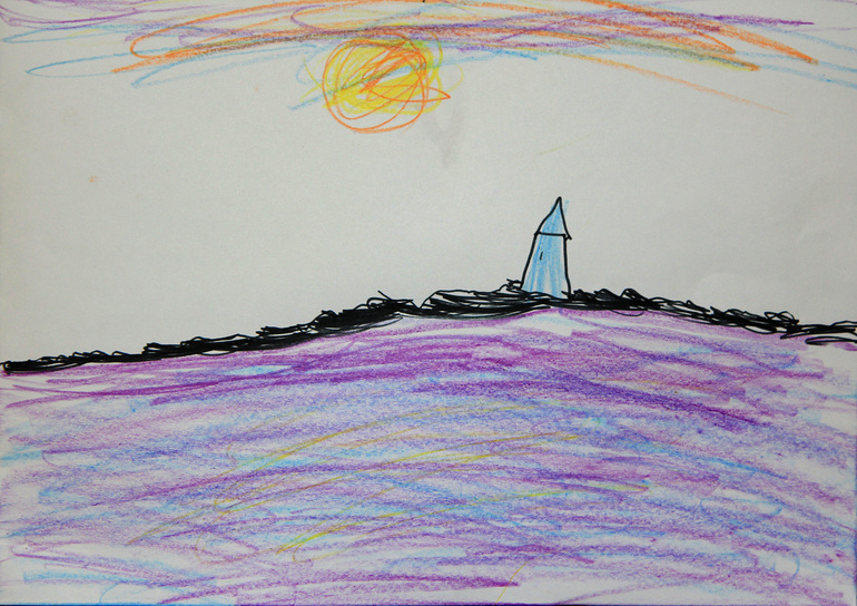 Один из закатов покажу. Я его сфотографировала, а дочка впечатлилась красотами и игрой цвета, и на следующий день нарисовала. похоже?