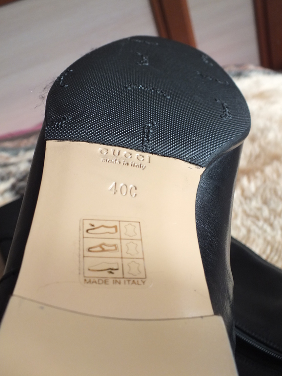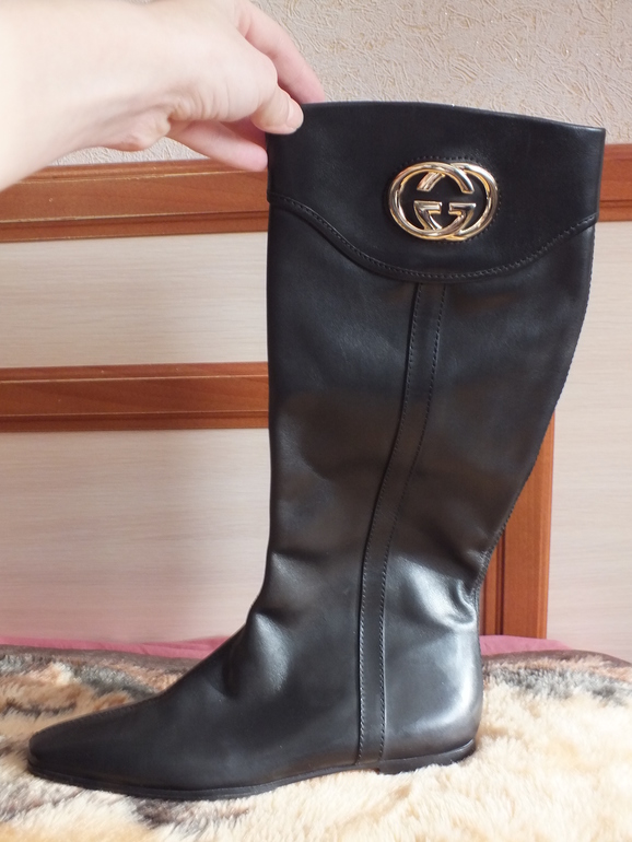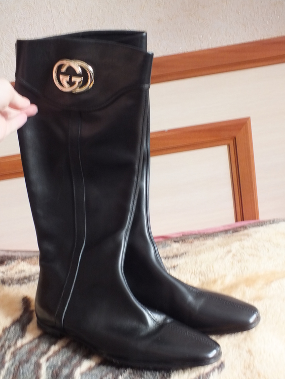 Сапоги GUCCI НОВЫЕ. Оригинал. Размер 40 (полноразмерные). 100% Кожа, включая подошву. Были привезены мне лет 6-7 назад под мой заказ из Италии. Но с размером я пролетела. Мне на полный 39 большие. Привозились как оригинал. Заказывала для себя, поэтому перевозились сапоги без коробки (для удобства транспортировки), и хранились соответственно тоже без коробки - в фирменном мешке. Из-за такого хранения видимо, на сапогах обнаружила небольшие нюансы - см. фото. Видны они только с очень близкого расстояния, при носке, естественно, ничего этого видно не будет. Планировала носить, поэтому все ценники, бирки и т.д. повыкидывала. Сделала специальные накладки на подошву и каблук, несколько раз одевала дома, но носить так и не смогла - большие. То, что сапоги не ношены можно легко определить по их подошве. Сапоги на неширокую ногу и с достаточно узким голенищем. По запросу могу сделать замеры и доп. фото. Поменяю ТОЛЬКО НА ЛОМ ЗОЛОТА ИЛИ ГОТОВЫЕ ИЗДЕЛИЯ ИЗ ЗОЛОТА БЕЗ КАМНЕЙ по адекватный эквивалентам, или КОФЕМАШИНУ (выборочно) . Экв. ставлю примерный (учитывая нюансы) 12 000 - 15 000 - окончательный экв при обмене будет зависеть от Ваших экв.))