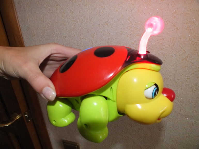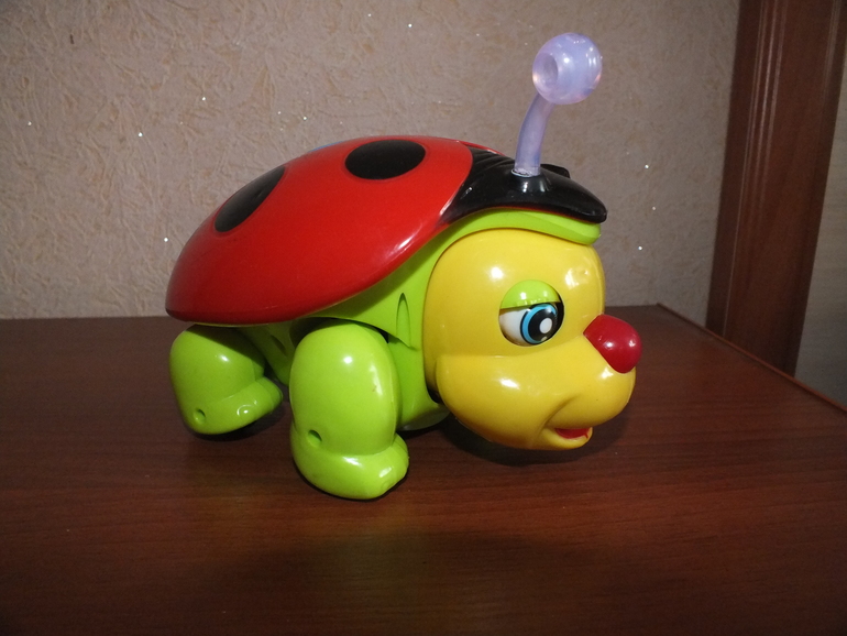 Жук на батарейках. Движется, поет, мигает. Ножки, голова и глаза шевелятся при движении. Есть нюанс - сломали одну рожку (на фото видно). Экв. 250