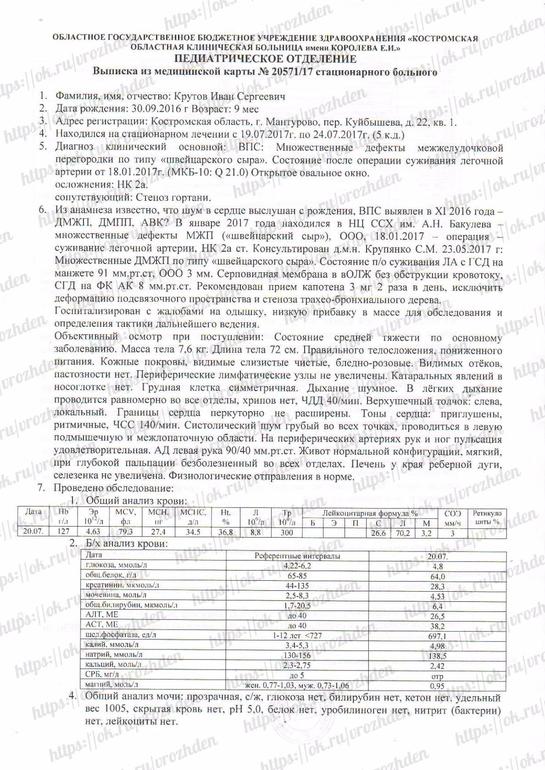 Операция предстоит сложная, полостная на открытом сердце.т.к у малыша сложный врождённый множественный порог сердца по типу "швейцарский сыр" операция еще не последняя...26 сентября нас госпитализируют в Федеральное государственное учреждение "Федеральный цент высоких медицинских технологий "г.Калининграда для проведения хирургического лечения ВПС. Оперативное лечение будет по квоте, а вот расходы на проезд до Москвы Калиниграда. проживание за счёт собственных средств, которых у семьи нет. Пожалуйста, помогите.Даже 100 рублей могут сделать свое доброе дело.