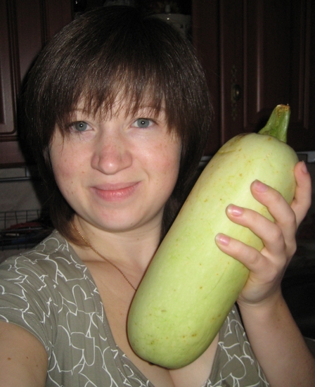 Я достала из холодильника заранее отобранный кабачок (надеюсь, он оценил честь быть съеденным первым!),