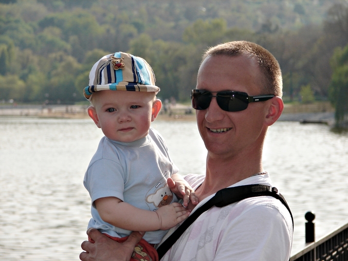 Жарко очень было, Кирюша раскраснелся как помидорчик...А ниже Кирюша с папой!