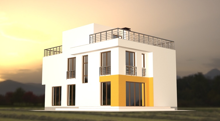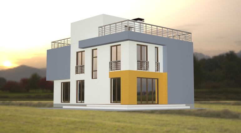 Вопрос 3, контрольный: может, другие части выделить цветом или объемом? Насколько гармоничен дом в таком варианте?