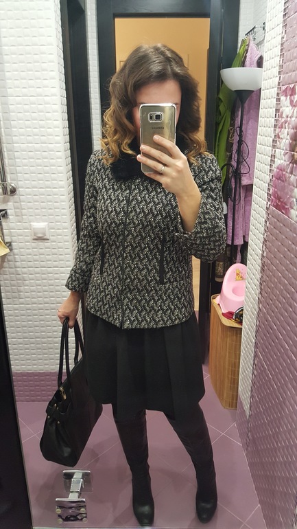 Откинула на вечер все мамское и пошла с подружкой в кафе. Что-то думала-думала, как одеться. И получился практически тотал блэк)) Заодно расчехлила свои ботфорты, раз они теперь в моде!