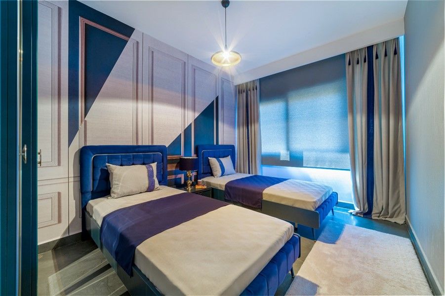 Потрясающая трехкомнатная квартира выставлена на продажу всего в 200 метрах от Средиземного моря. Апартаменты находятся на 4-м этаже нового недавно достроенного комплекса недалеко от центра Махмутлара. Богатая на развлечения городская инфраструктура и огромное количество кафе и ресторанов - всё это находится здесь в шаговой доступности.