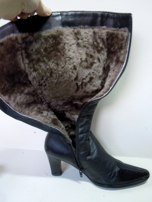 Сапоги бу - это по фотографиям видно, есть немного морщины на коже, носила их одну московскую зиму на работу, после этого набойки поменяла - они новые все видно на фото, есть потертость на пятке внутри, где написано терволина - тоже видно на фото, цвет сапог черный, но если придираться, то есть еле заметный белесоватый оттенок на коже ближе к подошве, хотя после крема это незаметно - поэтому цена и снижена. Покупала я их гораздо дороже за 7000. но других дефектов нет - все так как на фотографии, мех внутри в идеале.