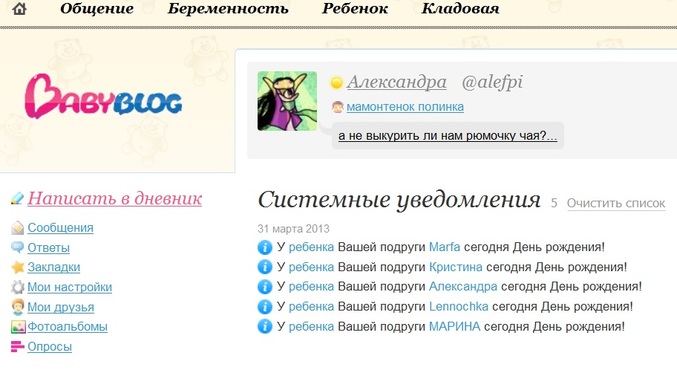 Александра 13 лет сговорились? или отмечали что то шумное все вместе?)))))) но все равно, поздравляю всех и каждого, и очень вас люблю! Посмотрите еще 20 записей на эту тему Отменить Ответить Marfa Спасибо!))) Ого сколько.) 03.04.2013 Ответить Лея У меня еще больше уведомлений: 7 именинников сегодня!) Мазаль тов всем! 31.03.2013 Ответить племяшка :)) балбесы Чаты Беременных Выберите чат: Январята-2026 Февралята-2026 Мартята-2026 Апрелята-2026 Майчата-2026 Июнята-2026 Июлята-2026 Августята-2026