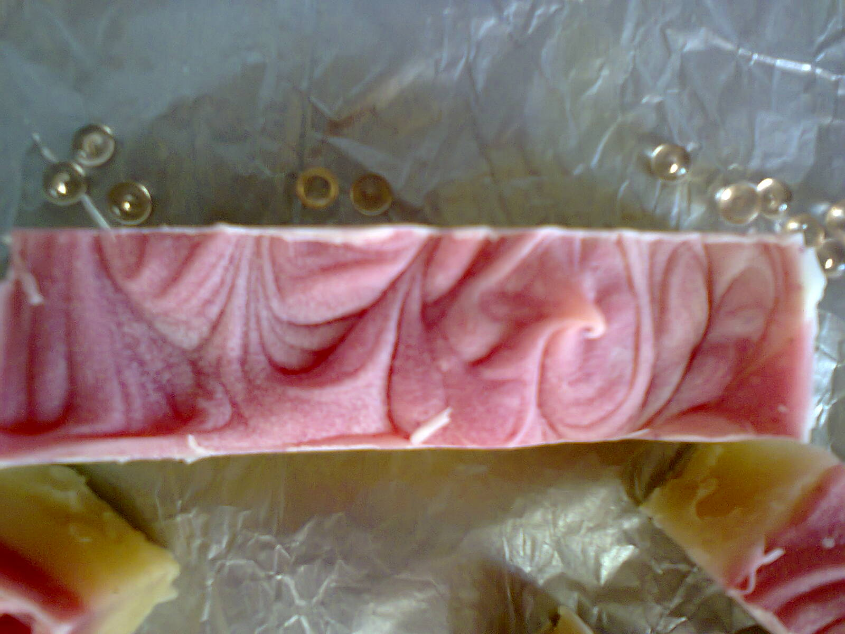 Ну принимайте первый опыт. Пробовала типа Кастиль холодным способом состав оливка кокос. Я знаю что это мыло без красителей, но мне очень захотелось верхушку такую сделать нарядную!!!!!! В тот момент я не подумала, что краска будет мигрировать и будет не очень.... На то он и первый блин! На фото видно что еще оно мягковатое (делала в воскресенье вечером). Ну очень хотелось показать вам мои дорогие мыловарочки! Спасибо за опыт которым вы снами делитесь! Отдельное Спасибо Александре , что слушала мои стенания!