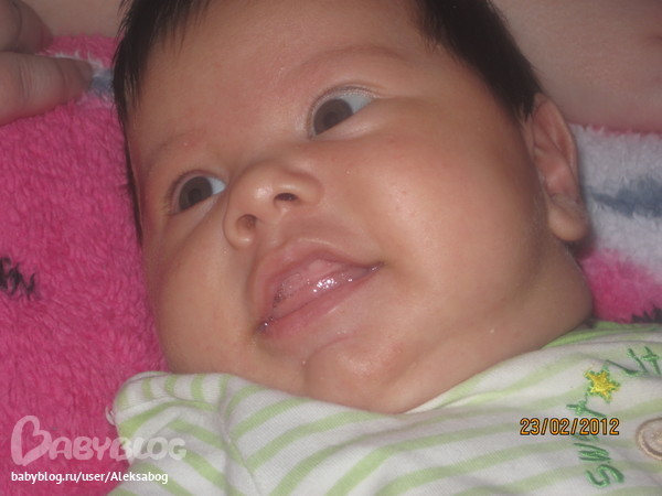 Весим мы уже 6кг 150гр а рост у нас 60см ,агукаем вовсю улыбаемся постояно и начинает смеяться даже в голос,хорошо держим головку лежа на животике , только вот слюни начали течь ужасно много и постояно мож зубы уже даже не знаю что и думать .а вот фота наши .