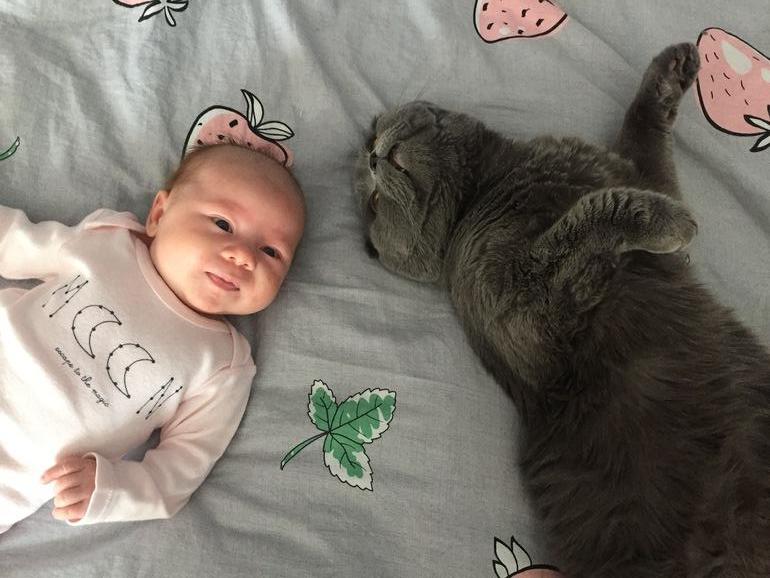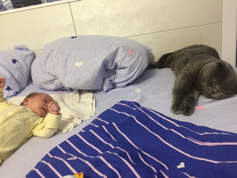 Есть у меня обожаемый кот Топаз. Я его прям обожаю, обожаю и очень переживала как бы он не начал фишки какие отмачивать после рождения ребенка. Не отмачивает: просто смотрит с пренебрежением и удивлением на Соню и орет вместе с ней. Дочку пока побаивается, но мне высказывает на кухне все свое негодование. А я что - умоляю простить и усиленно кормлю вкусняшками. Итог: я не прощена, кот может не захотеть есть говядину, но уже свыкается с ролью няни малышатика)