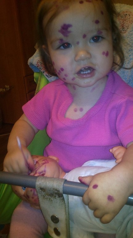 Под конец карантина зацвела))) Обсыпало больше чем старшего и до сих пор сыпет.Температура 37.8.Надеюсь все пройдет хорошо.Вот так мы мазались))