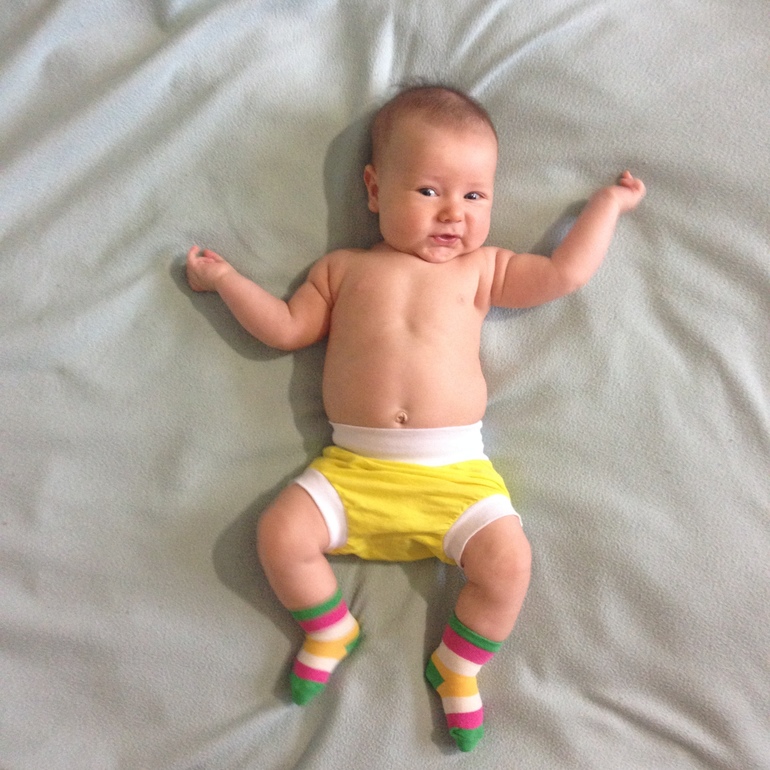 Смешной какой))) Мы без трусиков голопопим:))) Улыбаемся и предпочитаем лежать на спинке) Во вт идем на замеры, но мне кажется, что прибавили не оч много...)