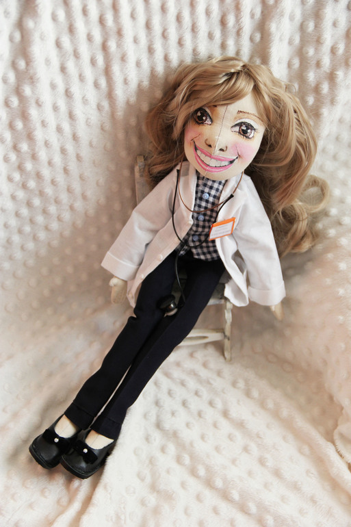 Ну и вторая моя портретная кукла, это девушка-врач, давалась мне очень тяжело..голову только с пятого раза нарисовала такую какой была довольна...сложно это.. передать черты и характер, особенно если ты не портретист