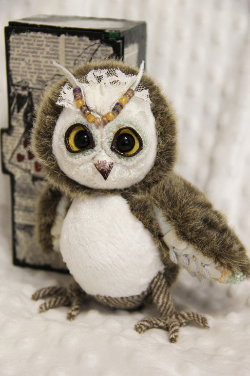Эта совушка шилась для конкурса в инстаграм, результаты будут известны еще не скоро, а я к Вам за советом... В общем задание такое - сшить фактурную совушку с использованием самых различных материалов, и обязательно хоть одну бисеринку пришить. ну и чтобы выкройка и идея была своя...