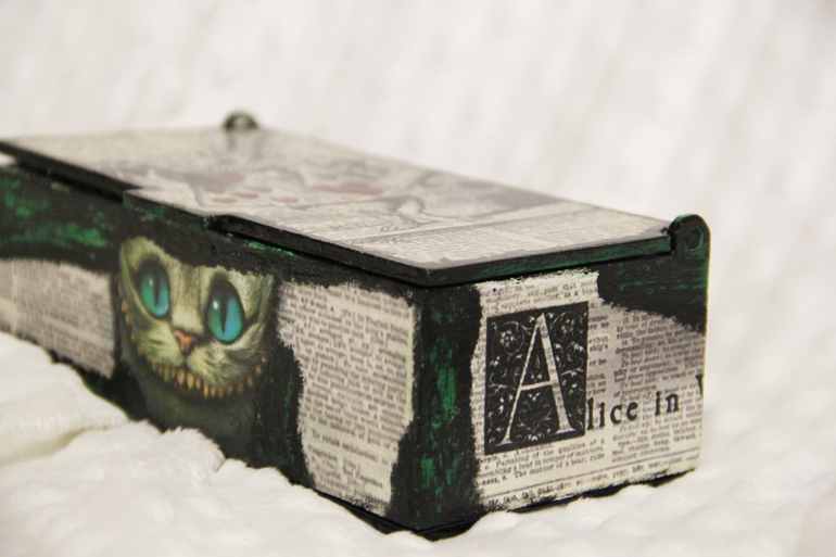 Покажу Вам шкатулочку из моей любимой темы...Алиса, котик Чеширский, кролик..я просто обожаю эту историю...