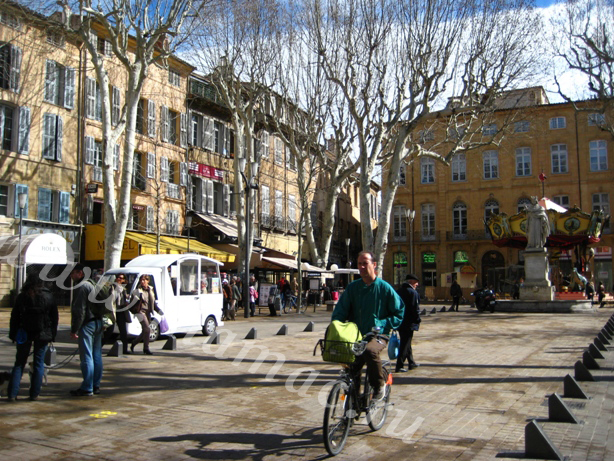Центральная аллея Экса представляет из себя главную туристическую улицу. Вся левая, солнечная, сторона её занята ресторанами, пиццериями и другими точками «общепита». По нашему мнению, это отличное место для того, чтобы посидеть за бокалом белого вина или с чашечкой кофе и понаблюдать пеструю толпу туристов, проходящих мимо Вас. Однако, если Вы желаете обедать или ужинать это не самое лучшее место. Вообще к выбору ресторанов в Эксе надо подходить осторожно. Мы, например, прогуливаясь по закоулкам Экса увидели симпатичный ресторанчик, в котором, кстати, было полно посетителей, и зашли туда. Уже в процессе заказа мы удивились, увидев поваров, которые готовили еду в грязных засаленных фартуках и вытирали об них руки в процессе приготовления пищи. В итоге – за обед мы заплатили порядка 50 ЕВРО, получив 2 салата, 2 основных блюда ( рыба и мясо ) , воду и кофе , но и получили расстройства желудков уже через 2 часа после еды. Для того, чтобы хорошо и безопасно поесть – спрашивайте рекомендации на ресепшене отеля, в котором Вы останавливаетесь. Мы от себя можем порекомендовать следующие проверенные места: ресторан «2 брата» и ресторан гостиницы «Pigonnet”. Традиционно подают перед едой оливки и хлеб, в ресторанах обычно при переменах блюд подают «комплименты» - маленькие порции супов или различных мини-закусок. Возвращаясь к архитектуре… Главная улица Экса знаменита по многим причинам. Во-первых она создана с соблюдением законов пропорции Леонардо Да Винчи. То есть ширина улицы равняется сумме высот зданий по обеим сторонам. Во вторых – на ней 4 фонтана и 44 платана и длиной она 444 метра. На прилагаемых фотографиях Вы можете оценить красоту фонтанов, домов и платанов на главной улице Экса.