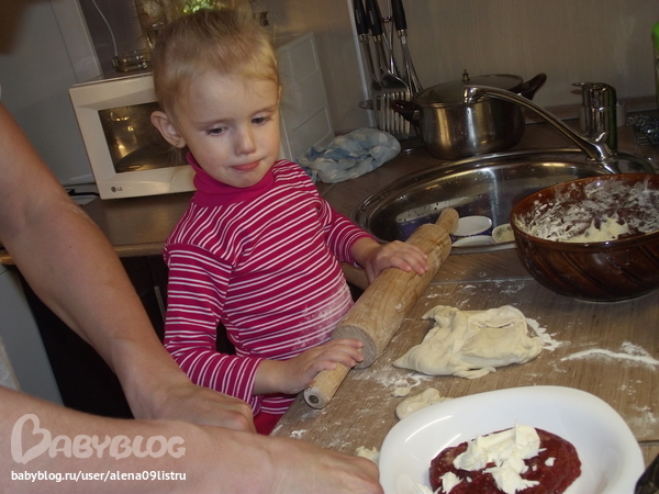 помогает посуду мыть,бельё развешивать,"пирожки" из теста лепит и конечно же ОЧЕНЬ МНОГО БАЛУЕТСЯ!!!А вот собственно и мы: