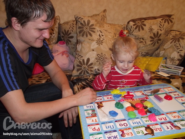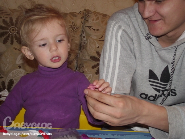 Заниматься стали больше и привлекли в процесс папу-мы с ним и лепим,и рисуем и играем.Я довольна очень!!!А Рита вообще в восторге.Пыталась обьяснить как разрисовывать раскраску-не понимает пока,обрисовывает всё,что видит.Пазлы собирали-интересно и мне,и ей,только надо большие фрагменты покупать-в мелких и сама теряюсь.А вот так проходят наши вечера:шмотошница моя каждый день наряжается во всё,что видит.А ещё и маму с папой иногда наряжает,ну и конечно же свои любимые игрушки