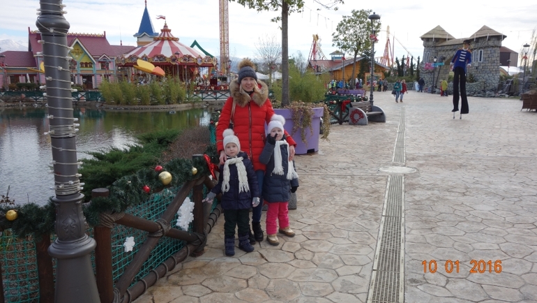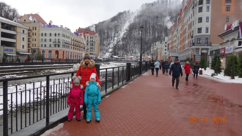 На Новогодних каникулах ездили семьей в Сочи. На поезде до Адлера сутки. Еще из Москвы забронировали себе машину, чтобы было на чем там передвигаться. Она нас ждала на вокзале. И поехали в свой отель - всеми известный "Богатырь". Очень мне понравился отель. И номера и еда - все супер. Правда мы в нем особо не сидели. Все обколесили, и Красную Поляну, поднимались наверх на разных подъемниках, и в открытом бассейне плавали, в цирк сходили, в дендрарии погуляли, по самому длинному подвесному мосту прошли, все ресторанчики посетили. И, конечно, Сочи-парк!!!!! Все рекомендую!!! Там круто!!!! В-общем отличные вышли каникулы. И погоду в Рождество в самих Сочах доходила до +18!!!!