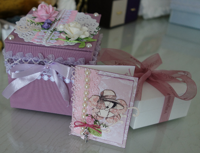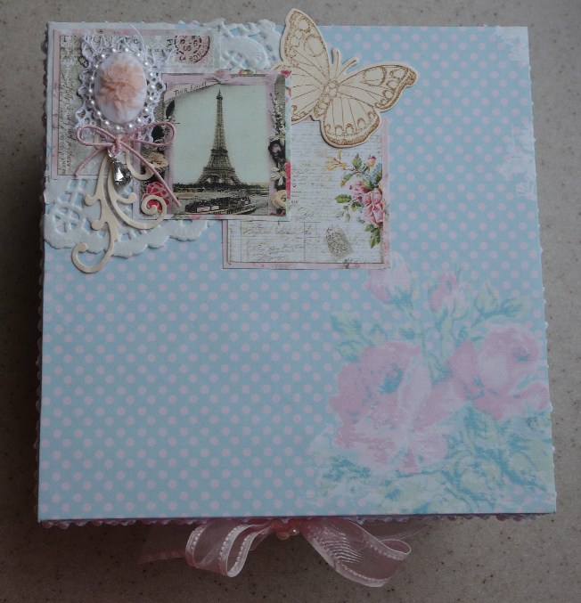 Была недавно на МК у Дарьи Бурмистровой, делали коробочки из чипборда 2 мм и обклеивали скрап-бумагой, вот какая вышла