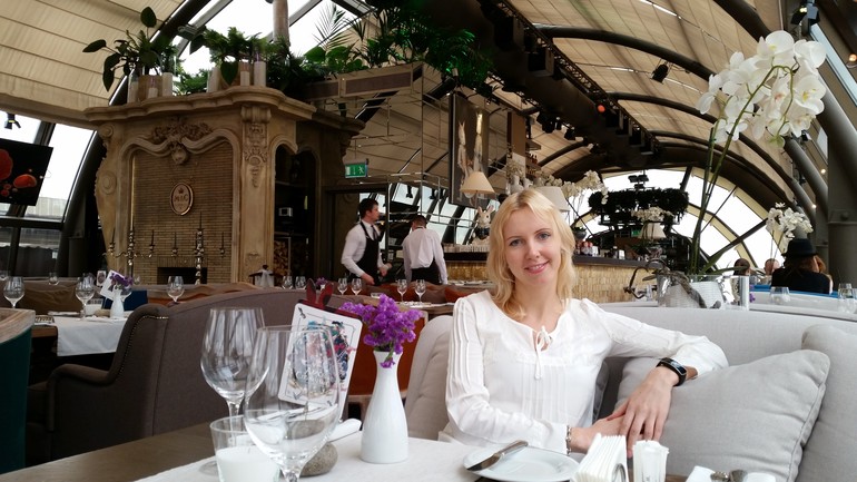 На 16 этаже Смоленского пассажа. Вошел в 50 лучших ресторанов мира. Реально клевый и вкусный!!!! рекомендую!!!
