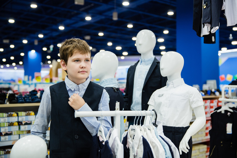 В торговом зале всегда есть зеркала, в которые сам ребёнок может посмотреть на себя. Ну, а маме всегда всё понятно ))