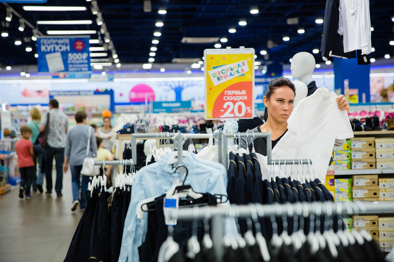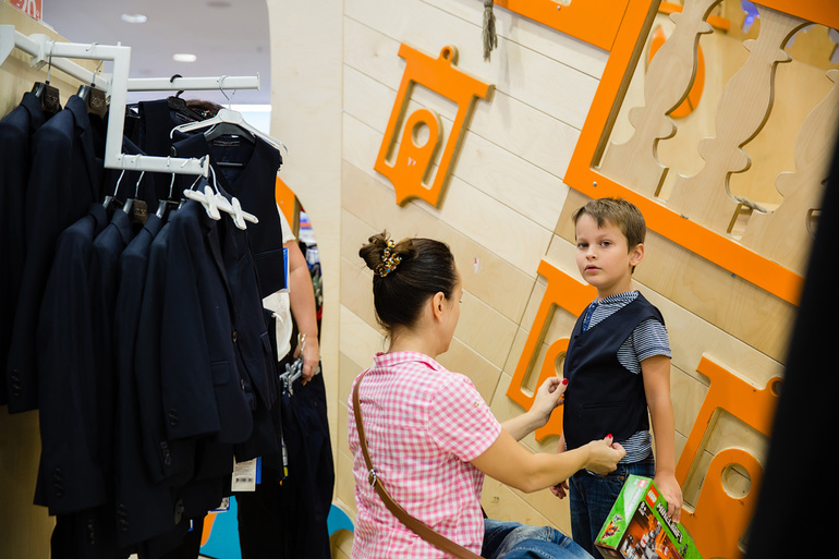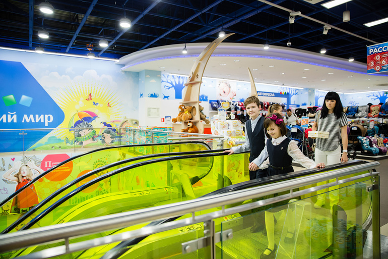 Итак, двоих детей я одела в школу за один визит в магазин Детский мир, спускаемся вниз за канцелярией.