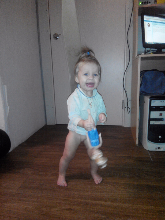 потом попытки свои возобновила и теперь я могу с уверенностью сказать, что Лера пошла! Точной даты сказать не могу, но примерно в 10,5 месяцев. Пользуется ногами пока не постоянно, но довольно таки часто)))