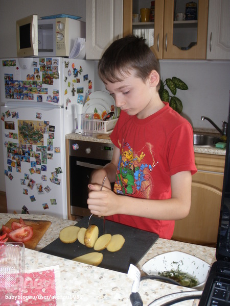 Влад проникся процессом - весь сосредоточен (что бы еще один палец не порезать)))