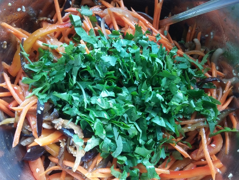 В это время чистить, помыть морковь и натереть на терке для корейской моркови: