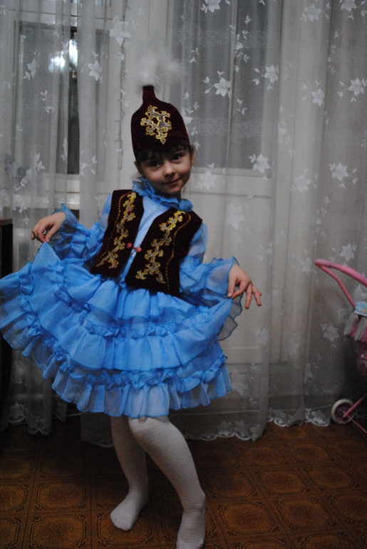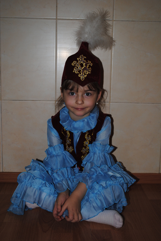 Детский садикПозавчера у дочи в садике отмечался гос.праздник - День Независимости. По этому случаю все детки должны были облачиться в казахские национальные костюмы. Мы взяли костюм напрокат (шить его ради того, чтобы одеть два раза в год - не хочется, тем более пошив дорого выходит).
