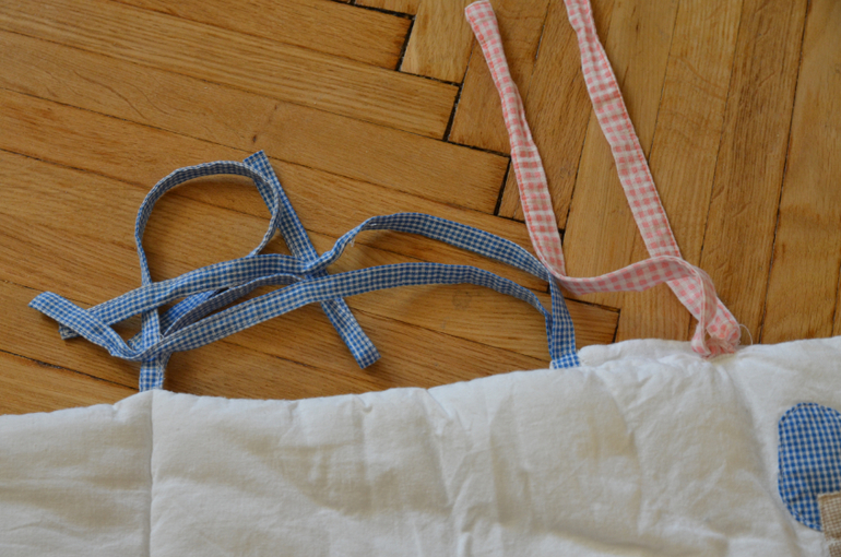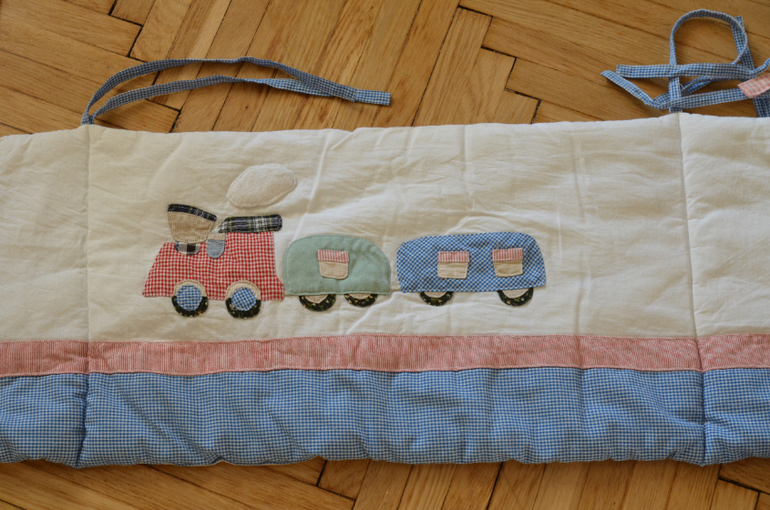 В подарок к спальникам отдам бортики (3-х сторонние)-2 шт. в кроватку из той же серии. В хорошем состоянии, только верёвочки отрывались, поэтому есть зашитые дырочки (с изнаночной стороны).
