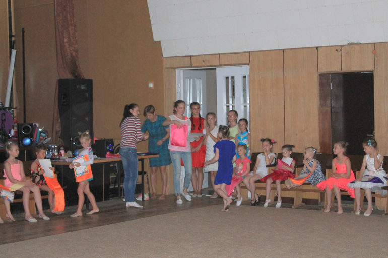 27 июня, в субботу вечером, всех родителей пригласили на концерт. Мы снимали на камеру, я уже в конце чуть-чуть пофотографировала. Награждение памятными подарками. В этом году получили значок и чехол для костюма