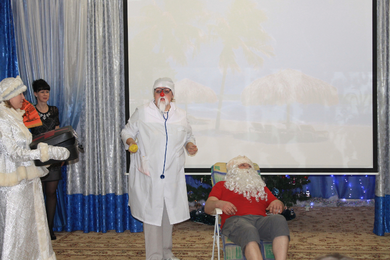 История такая: дети звали-звали Деда Мороза к себе на праздник, а потом выясняется, что Баба Яга подарила ему путёвку в Египет, и Дед Мороз уехал в отпуск))) Пришлось ехать, выручать, чтоб не растаял))