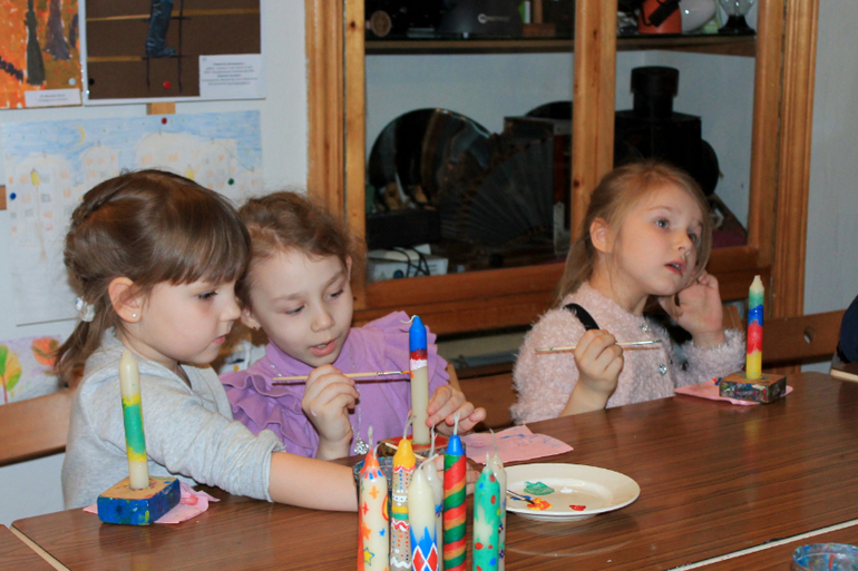 Программа включила в себя мастер-класс по росписи свечей и экскурсию по экспозиции музея «Огни Москвы». Это путешествие по вечерним улицам Москвы разных столетий, которое знакомит с историей освещения, развитием науки и техники.