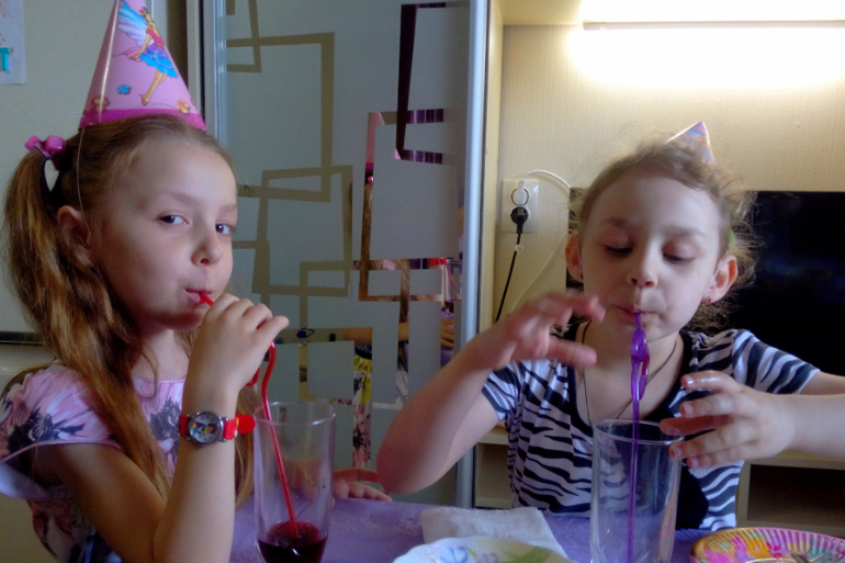 Тут повезло даже моей Настёне)) Она так хотела на ДР вместе с Лизкой, а её не пригласили. И прямо в день праздника папа Ульяны позвонил и говорит: "Что-то я стормозил сначала, собирай и Настю". Настя прыгала от счастья, вместе с Лизой орали как сумасшедшие от радости. Настю не смутил факт, что там собираются малявки. Отмечали на природе с аниматором.