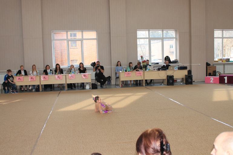 Настя. После операции 1-е соревнования и с новой программой. Выступила достойно. С ней в потоке выступили 10 девочек. Некоторые занимаются в категории А, но у них нет программы с предметом, поэтому выступают в В. Они посильней, конечно. Грациозней что ли. Но моя тоже молодчинка!