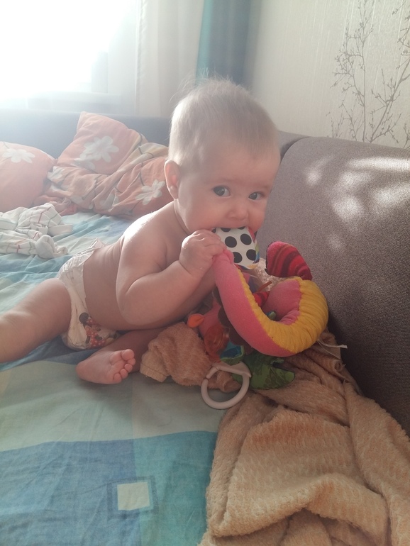Мимими моя)))) я их дождалась!!!! Эти зловестные 2х месячные сопли наконец-то влились в прекрасные зубки. Они еще не порезали десенки, но оба углами показывают, что с дня на день будут стучать😊 Спит ночью плохо, елозит лицом по кровати, а я лениво сразу тычу сисю, потому что спать ну очень хочется))))) Стул как вода, даю энтеросгель, чтобы убрать аллергию. В воскресенье бежала с ней орущей, пришли домой, а там писька с попой малинового цвета. пошла аллергия на что-то.