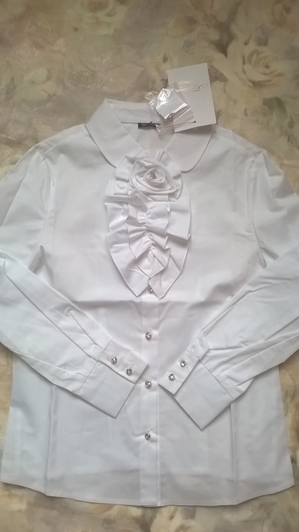 Новая школьная блузка Гермиона р128. Цвет белый. ПРОДАНА