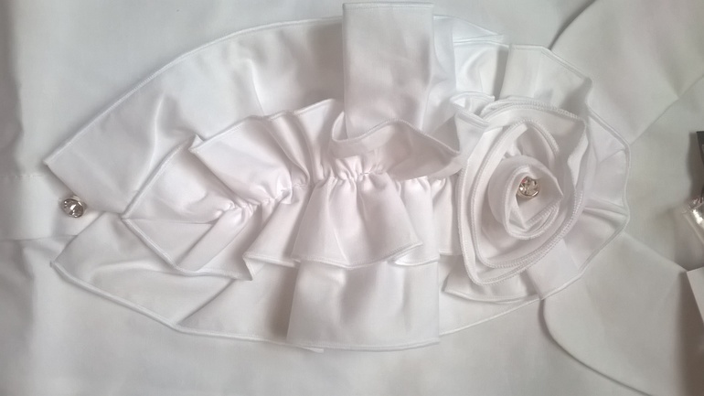 Только из пакета, помятая, поэтому жабо не такое объемное, если отпарить, будет точно так же выглядеть как на католожном фото) Оно съемное.