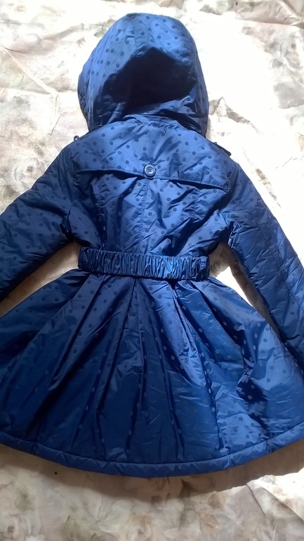 Здравствуйте, на рост 116( + -) ,на мой взгляд возможно от роста 110( подвернув рукава) и если ребенок стройный до 120 вполне. Замеры: рукав 45 см, по подмышкам 35см, в районе талии 32см, длина от плечика 62см