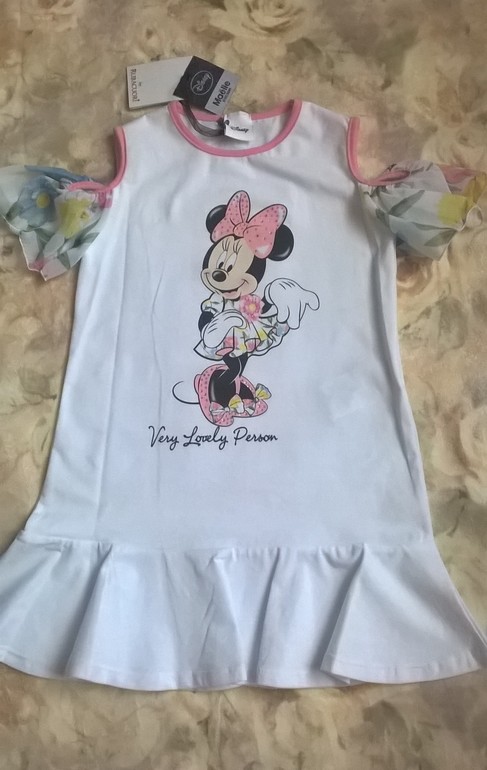 Полноразмерный, нам на 98см длинный((( Очень красивый, рисунок в стразиках, хлопок.
